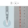 Industrielle Maschinennadel mit rundem Schaft. Schaftdurchmesser 1,98 mm, Länge bis Ohr 38,9 mm, Spitze R. Deutsches Produkt, Preis für 1 Box (10 Nadeln in einer Box).