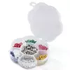 Collection Prym LOVE. Press fasteners JERSEY 8 mm, 60 pcs /box - 6 colors, 10 pcs of each color, with instructions and accessories. Apply by enclosed tools and hammer, Vario pliers 39448 or tripod 39458. German product, price for 1 box.