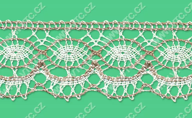 Flax bobbin lace, width 51 mm, price for 1 m, Czech product.