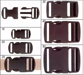 Plastic clip buckle, width 40 mm. Tensile strength 600 N. 10 pcs/pack. Czech product, price for 1 piece.