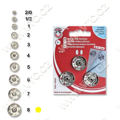 Stláčací gombík KIN, veľ.8 (21mm), 3 ks na karte. Český výrobok, cena za 1 kartu.
