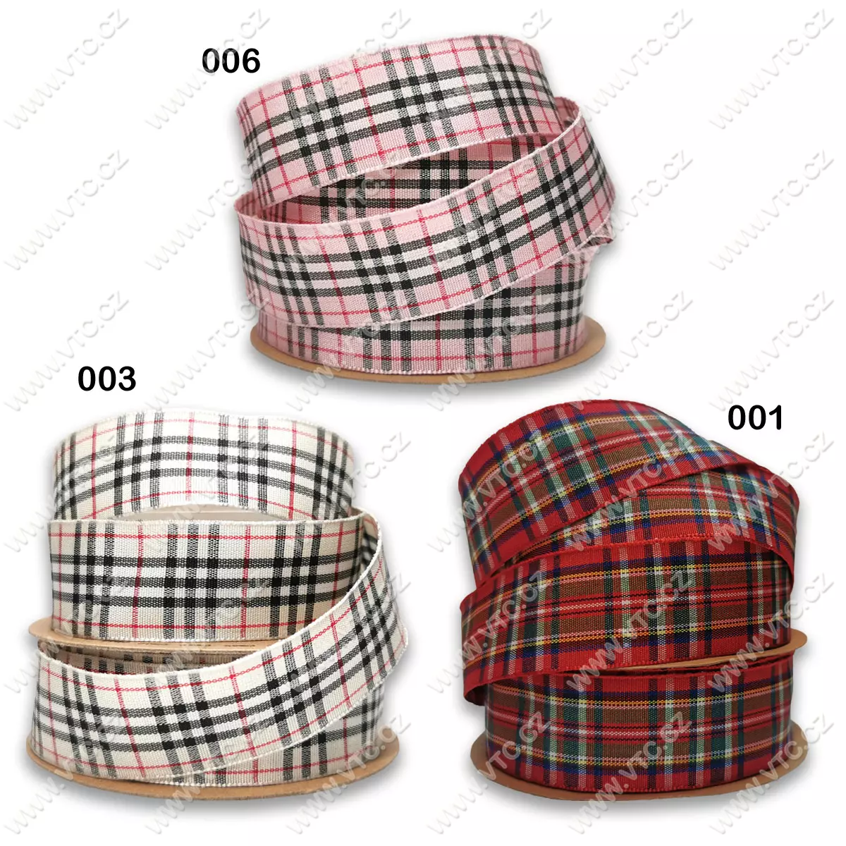 Dekorativní károvaná stuha, šíře 25 mm, návin 20 m. Španělský výrobek, cena za 1 m.