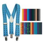 Klassische praktische Hosenträger für Jugendliche, Y-Rücken-Styling, Stabile 3-Clip-Befestigung, Breite 3,5 cm. Im Allgemeinen passt Personen bis zu 160 cm. Länge der ungedehnten Hosenträger 100 cm. Tschechisches Produkt, Preis pro 1 St.