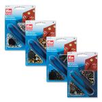 Bekleidungsösen, lackiert nichtrostend Messing, Maß: 5,5x5x10 mm. 20 St. auf Karte, Nietwerkzeug inbegriffen. Tschechische Produkt, Preis pro 1 Karte.