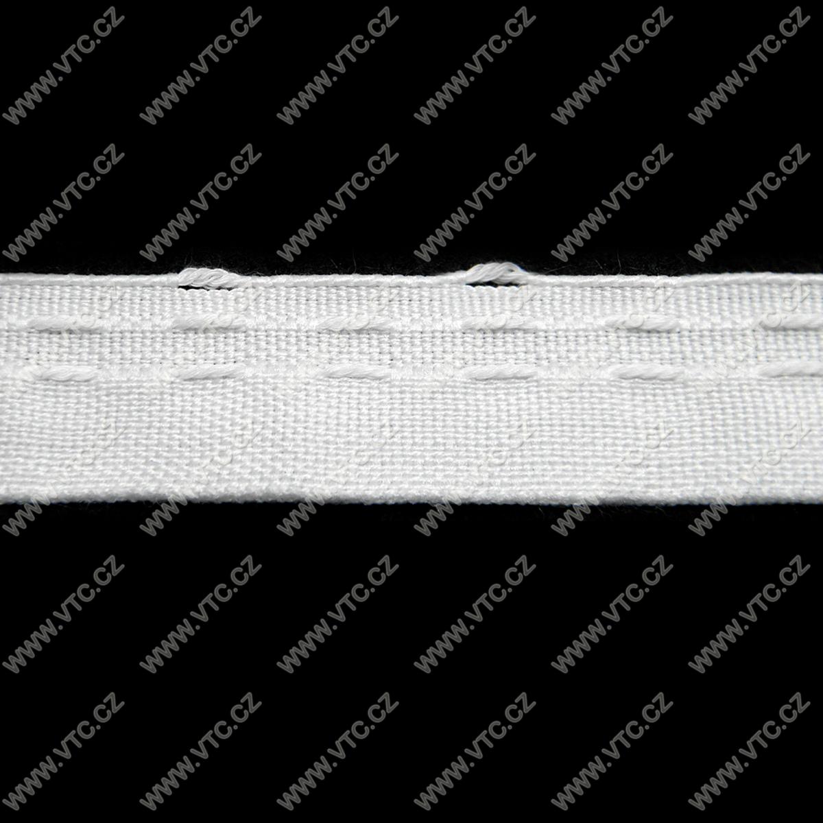 Universal lose Raffen Gardinenband mit einer Breite 20 mm. Nach dem Nähen und Falten entstehen Bandschlaufen zum Aufhängen. Der Abstad der einzelnen Schlaufen ist 35 mm oder weniger, je nach der Dichte kräuseln. Empfohlenes Verhältnis 1:3. Tschechisches Produkt, Preis pro 1 Meter.