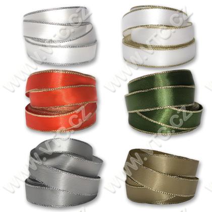 Dekoratives zweiseitiges Satinband mit mit Metalloplastik und Drahtkanten gewebt, Breite 24 mm, Rolle 20 m. Tschechisches Produkt, Preis pro 1 m.