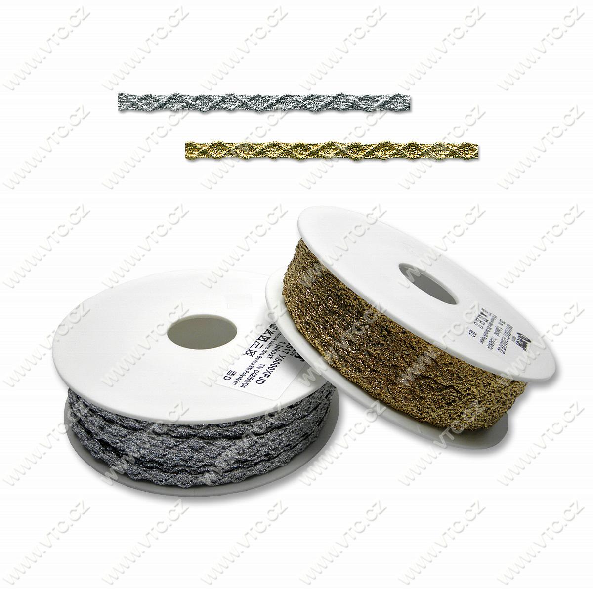Leonischeborte 6 mm, Aufwicklung 25 m, Preis pro 1 m, Tschechische Produkt.
