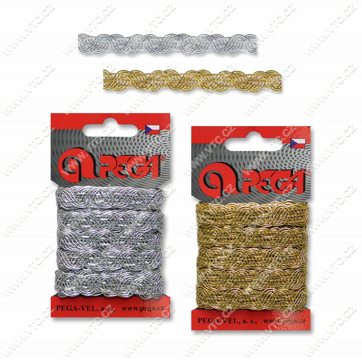 Leonischeborte Breite ca. 12 mm, 3 m auf der Karte, Preis pro 1 Karte, Tschechische Produkt.
