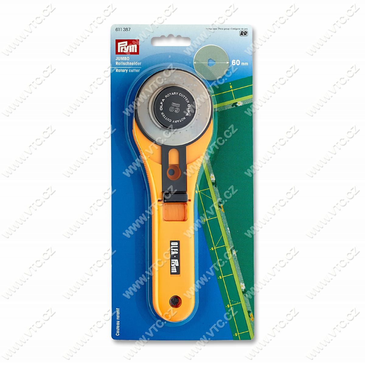 Rollschneider für Patchwork, Quiltarbeiten und andere Näharbeiten. Schneidet leicht mehrere Lagen Stoff gleichzeitig (bis zu 20 Lagen). Geeignet für Rechts- und Linkshänder. Klingedurchmesser 60 mm. Ersatzklinge auf der Karte 39271. Japanisches Produkt, Preis pro 1 St.