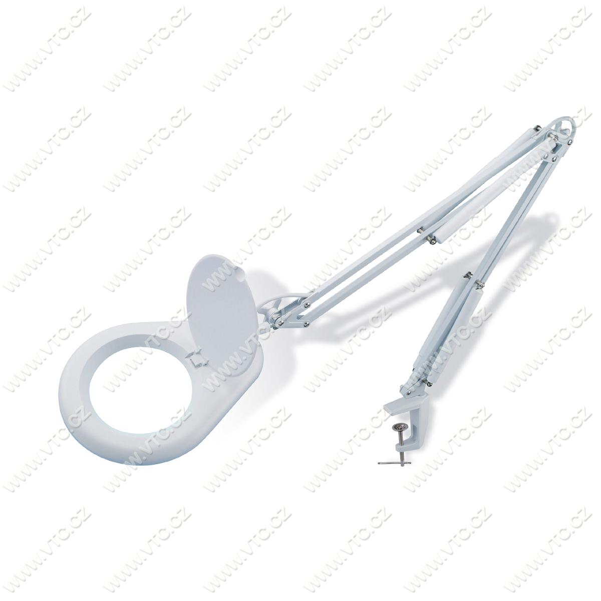 Leuchtlupe für den vielseitigen Einsatz. Sichere Klemmfunktion zum Anbringen an Arbeitsplatte. Die Linse besitzt einen Durchmesser von 12 cm und dient der 2-fachen Vergrößerung. Licht: tageslichtweiß. Hoch-einstellbar 0-70 cm. Voltzahl: AC 220V-240V/50Hz. Chinesisches Produkt, Preis pro 1 St.