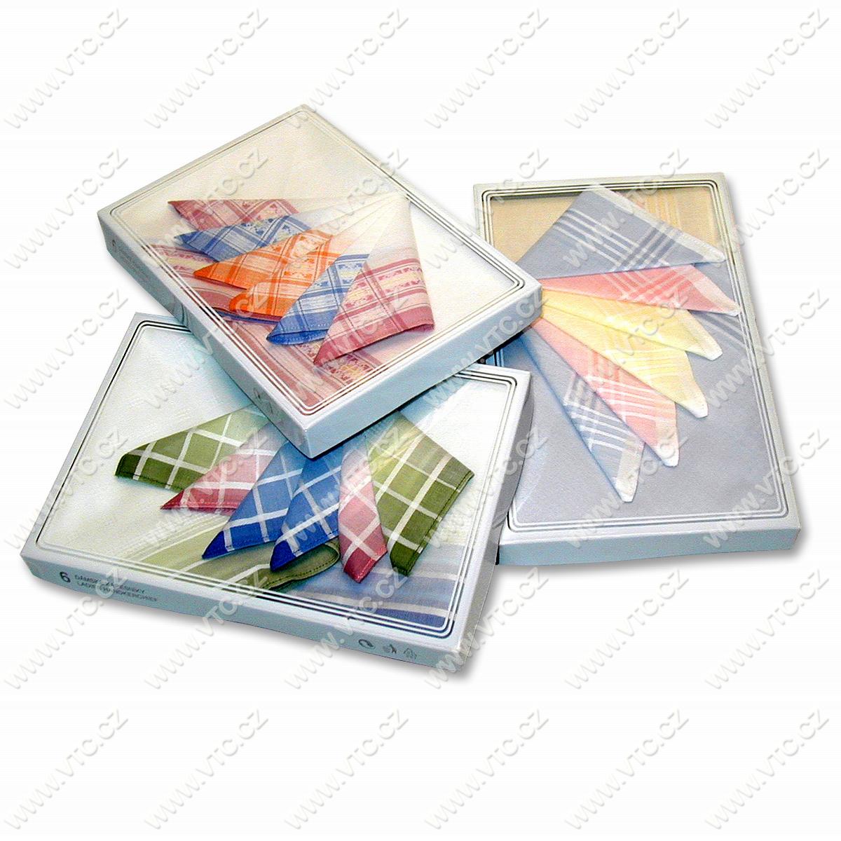 Damen Taschentuch, Gr. 28x28 cm, halbfarbig, Kammbaumwolle, 6 St. im Schachtel. Tschechische Produkt, Preis pro 1 Schachtel.
