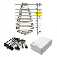 Sicherheitsnadeln, Länge 40 mm, 12 St. im Bund auf dem Ring, 50 Bunde in der Schachtel (600 St.). Tschechische Produkt, Preis pro 1 Schachtel.