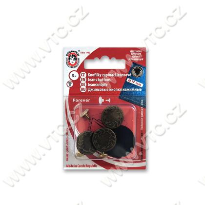 Unlösbar Jeansknöpfe FOREVER, Gr.7 (17mm), 3 St. auf der Karte. Tschechische Produkt, Preis pro 1 Karte.