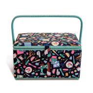 Großer rechteckiger Nähkorb für Aufbewahrung und Transport von Nähzubehör. Herausnehmbarer, transparenter Kunststoffeinsatz mit 7 Fächern, Tragegriff, Praktischer Magnetverschluss, Nadelkissen und Stofftaschen im Inneren des Deckels. Maße: 32,0x20,5x21,0 cm. Philippinisches Produkt, Preis pro 1 St.