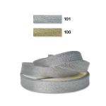 Hochwertiges Metallic-Schrägband, Breite 18 mm, in der Mitte gefaltet. Rolle 25 m. Spanisches Produkt, Preis pro 1 m.
