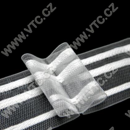 Standart transparent 50 mm pleated curtain tape with 2 folds and 2 rows of pockets for hooks on the backside. Suitable for sheer fabrics. Pleat distance 8 cm. Recommended plating 1:2. German product, price for 1 meter.