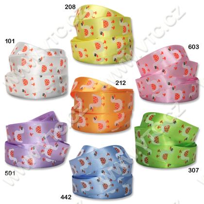 Decorative double-faced printed satin ribbon, width 24 mm, make-up 20 m. Czech product, price for 1 m.