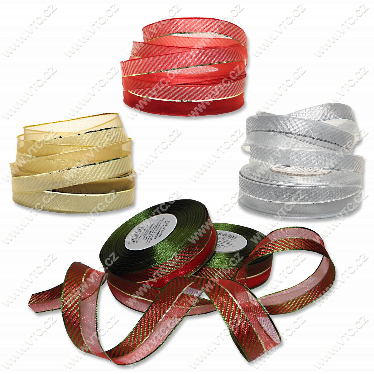 Decorative ribbon with inwrought motive made of metalloplastic yarns and wired edges, width 25 mm, make-up 25 m. Czech product, price for 1 m.