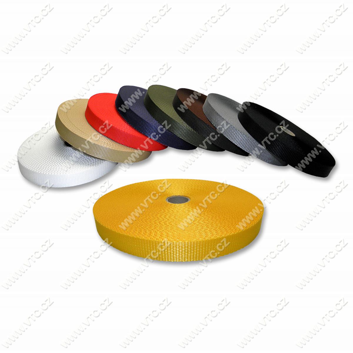Common webbing - strap, width 20 mm, thickness ca. 1,2 mm, make-up 25 m. Czech product, price for 1 m.
