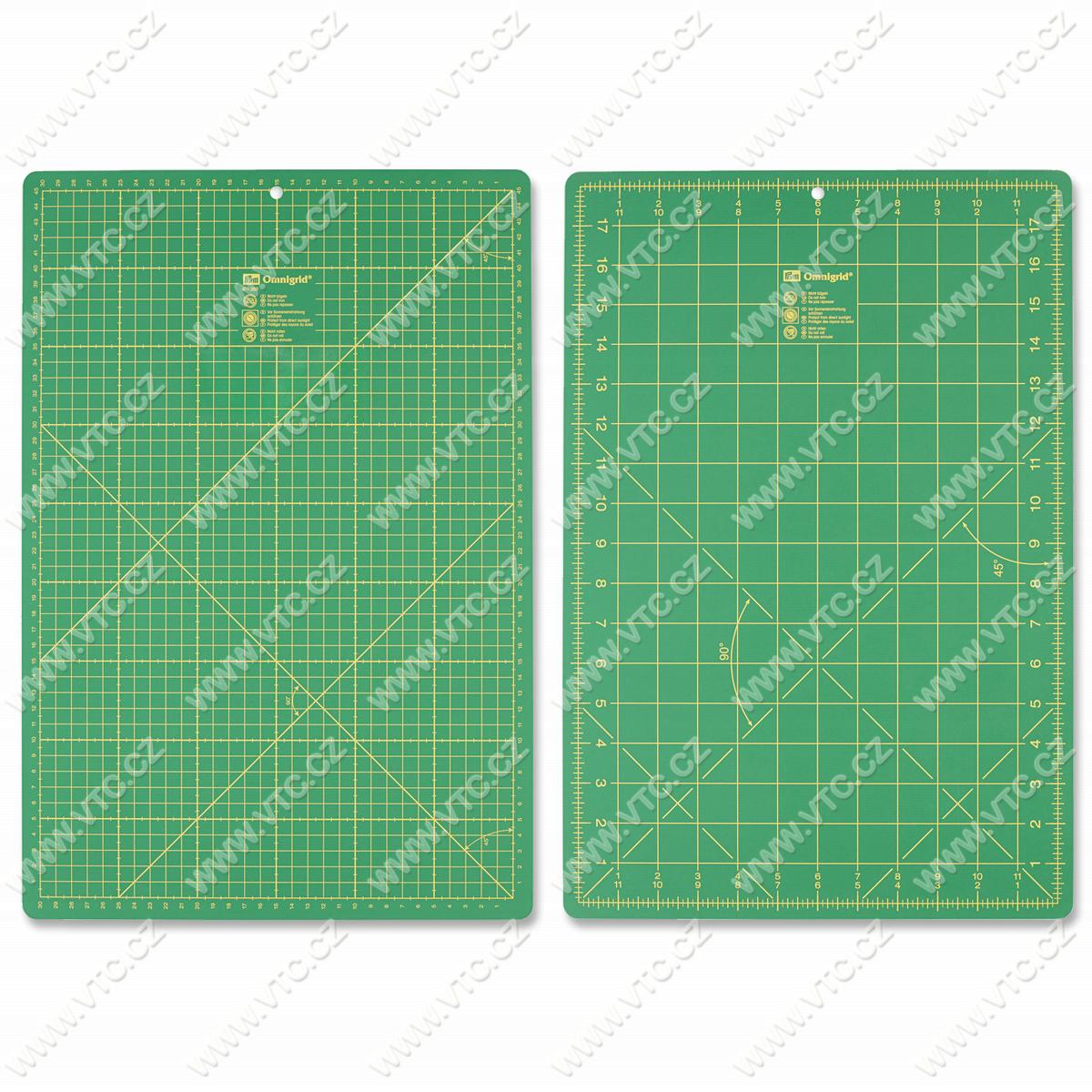 Sturdy double-sided cutting mat for rotary cutters and art knifes. The mat is self-healing, unbreakable and splinter-proof. Printed on both sides on a cm and inch scale. Dimensions 45x30 cm (17x11 Inch), thickness 2 mm. Hole for hanging. Taiwanese product, price for 1 pc.