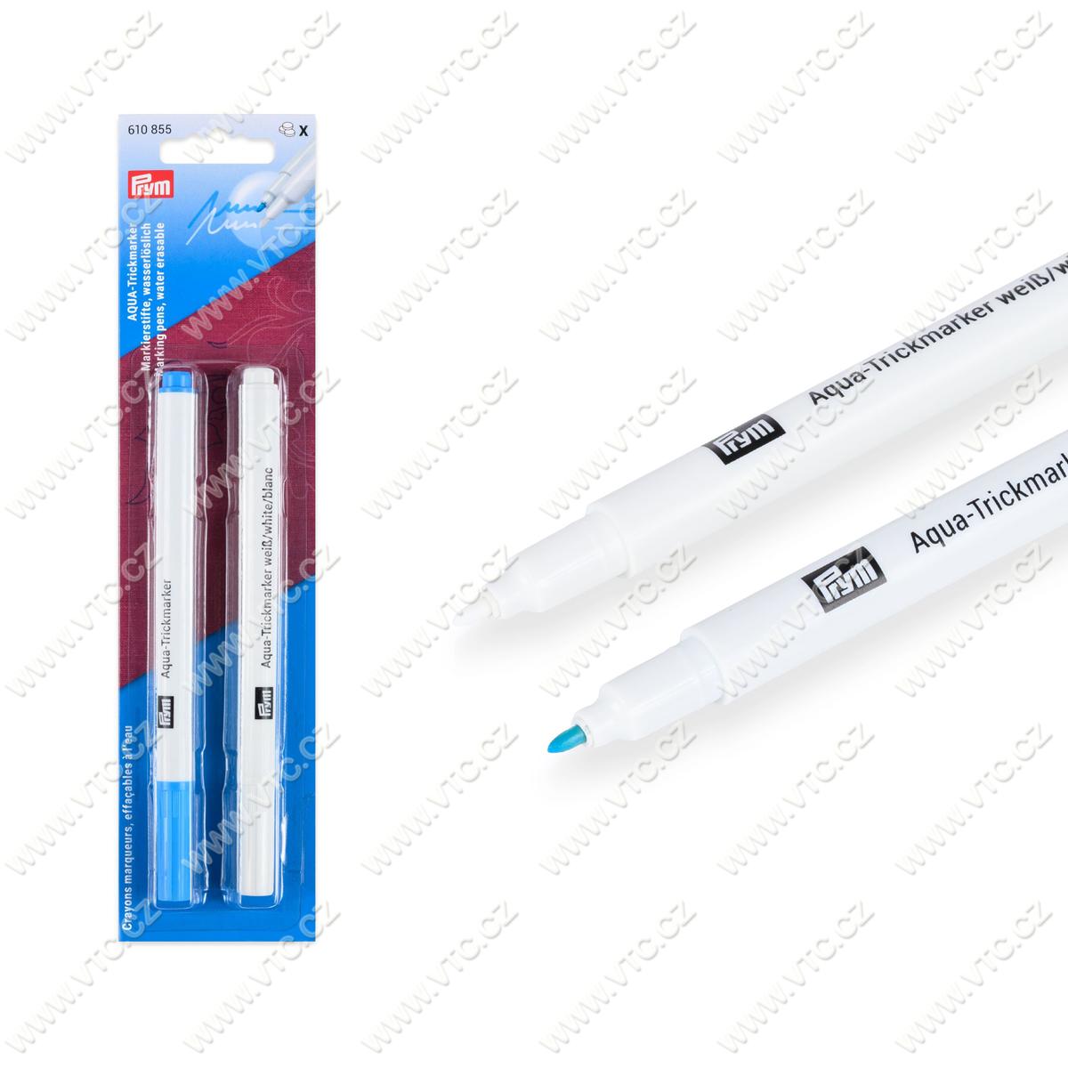 Magic marker for embroidery, patchwork, sewing, quilting etc. Water-erasable felt-tip marker. The package contains 2 pcs – 1x purple, 1x white. Marks must be removed with clean water or by gentle rubbing with damp cloth before ironing. Chinese product, price for 1 card.