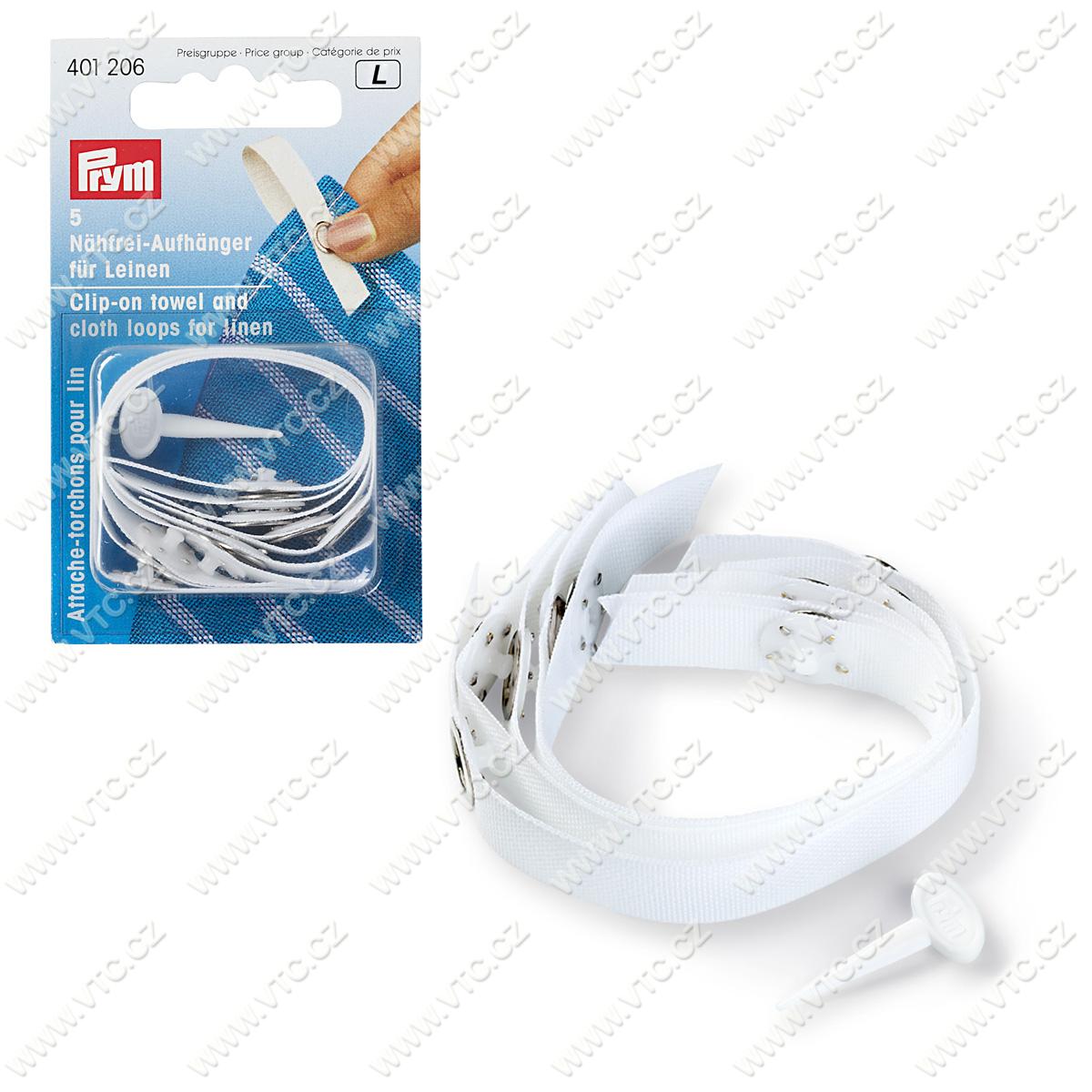 Hanger for terry cloth hand towels or kitchen towels. Includes press fastener for linen. Can be affixed without sewing. Washable up to 60 degrees. Contains 5 pieces. Chinese product, price for 1 card.