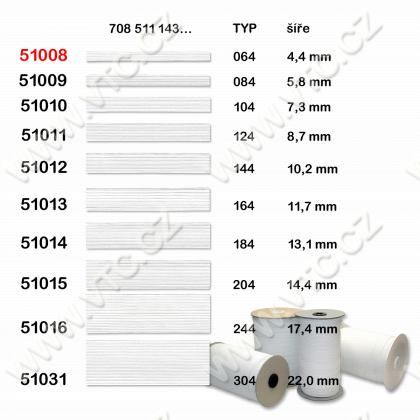 Flat elastic tape, width ca. 4,4 mm, elasticity 125 %, make-up 300 m. Czech product, price for 1 m.