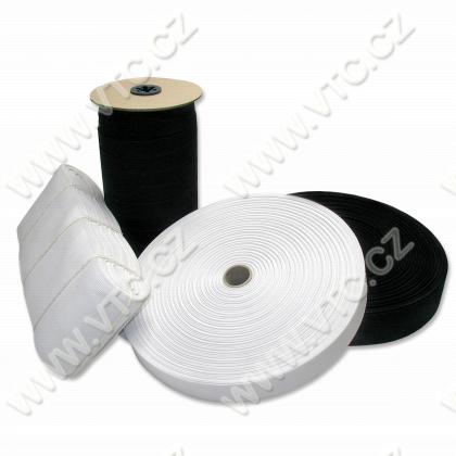 Flat knitted elastic tape, width ca. 20 mm, elasticity 160 %, make-up 100 m. Czech product, price for 1 m.