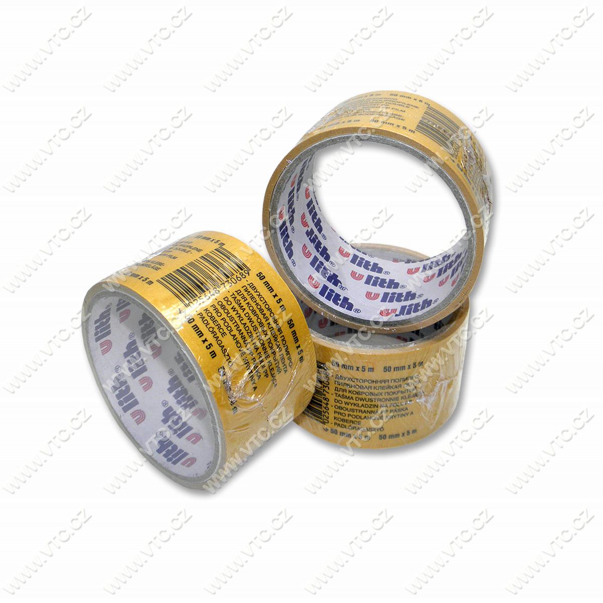 Double-side adhesive carpet tape, width 5 cm, length 5 m. Czech product, price for 1 pc.