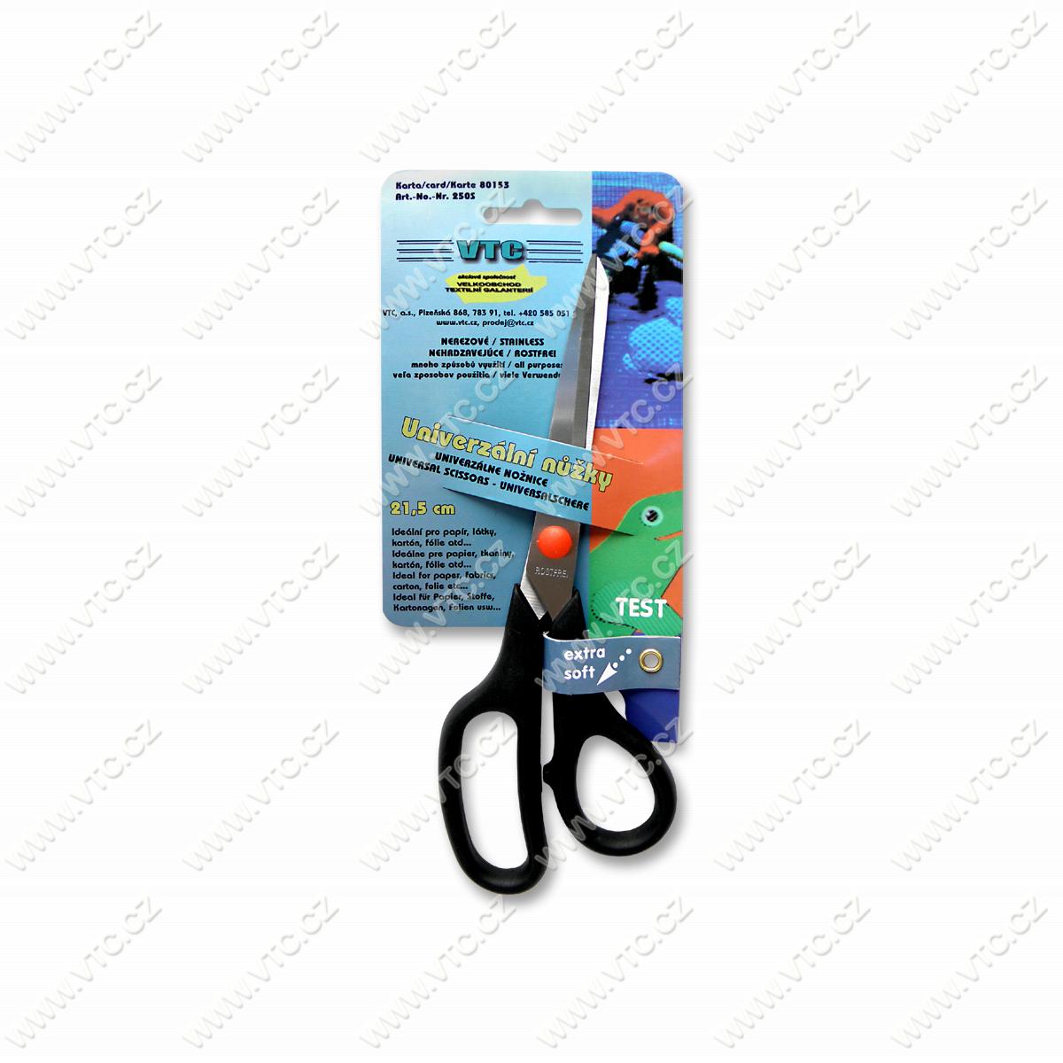 Quality universal stainless scissors with soft grip handles. Suitable for paper, fabrics, carton, foils etc. Price for 1 piece.