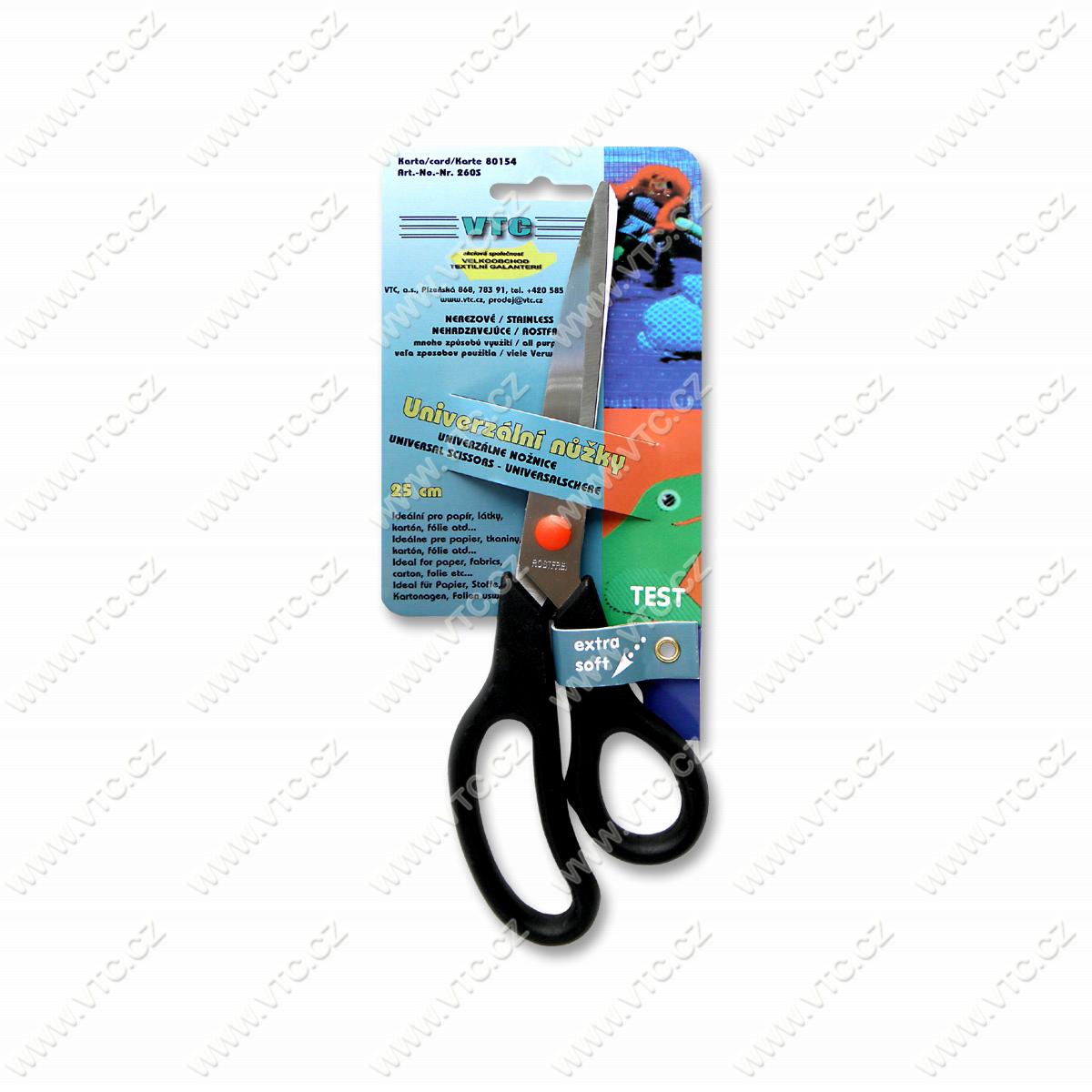 Quality universal stainless scissors with soft grip handles. Suitable for paper, fabrics, carton, foils etc. Price for 1 piece.