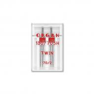 The flat shank twin needle, which is used in all conventional household sewing machines. Universal needle suitable for almost all fabric types. Suitable for tucks and double topstitching on elastic fabrics. Shank diameter 2,04 mm, lenght butt to eye 33,9 mm, round point with slightly rounded tip. Needle spacing 2,0 mm. Japanese product, price for 1 box (2 needles/box).