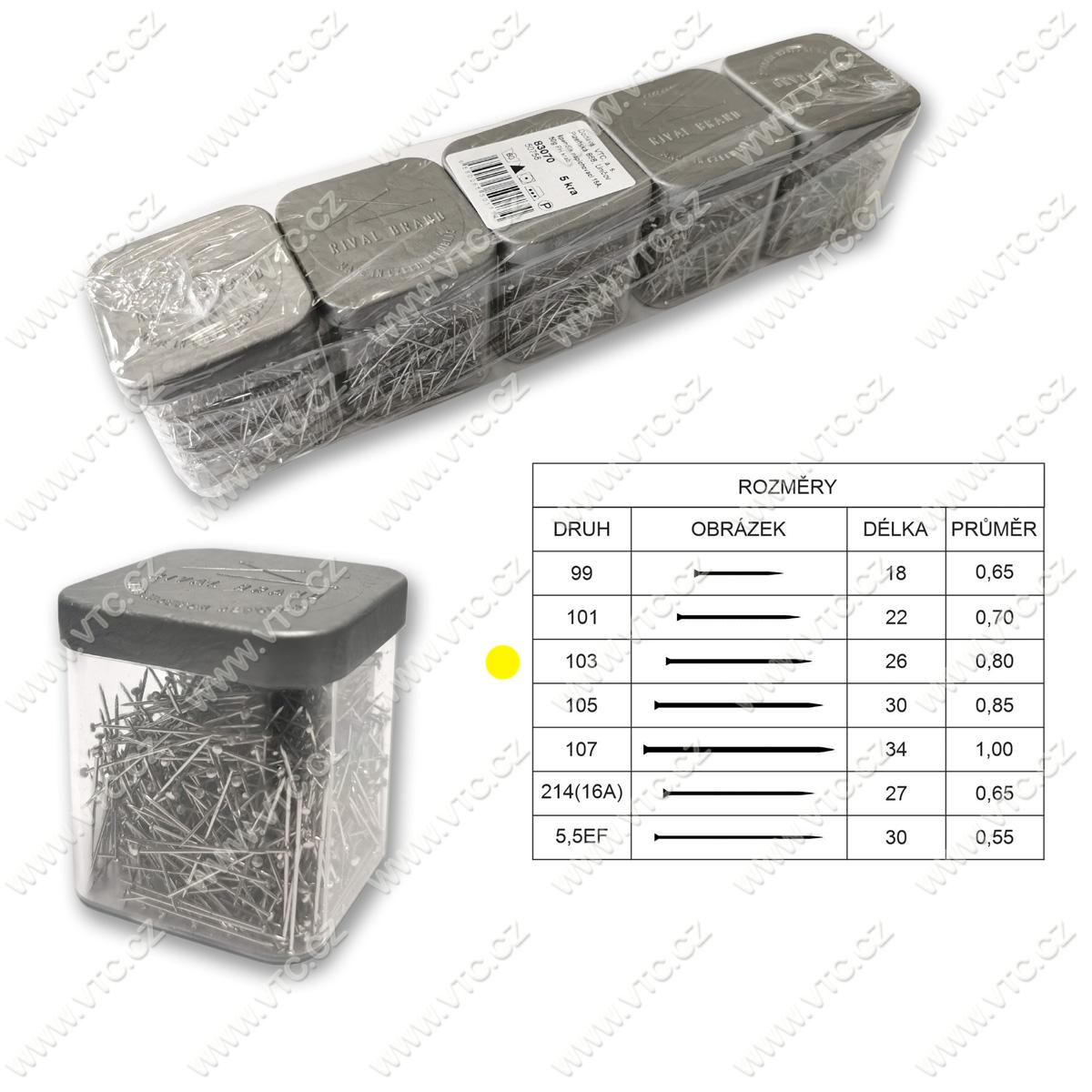 Steel pins 26x0,8 mm, 50 g in plastic box, price for 1 box, Czech Product.