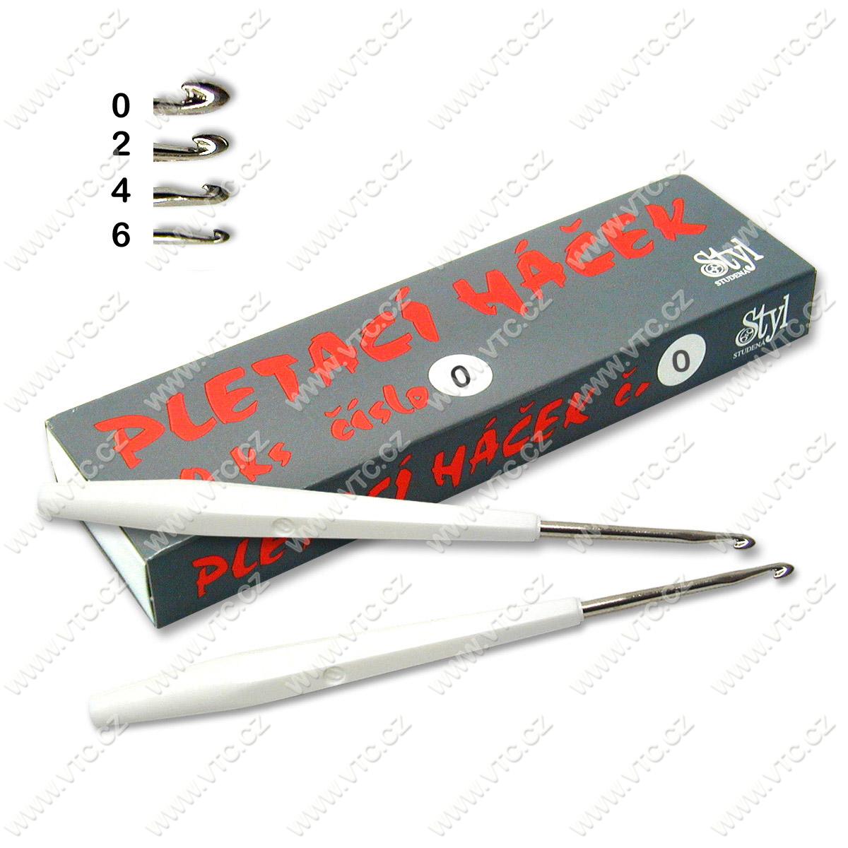 Knitting hook with plastic handle, lenght 125 mm, ca 1,5 mm, packed by 20 pcs, Czech product.