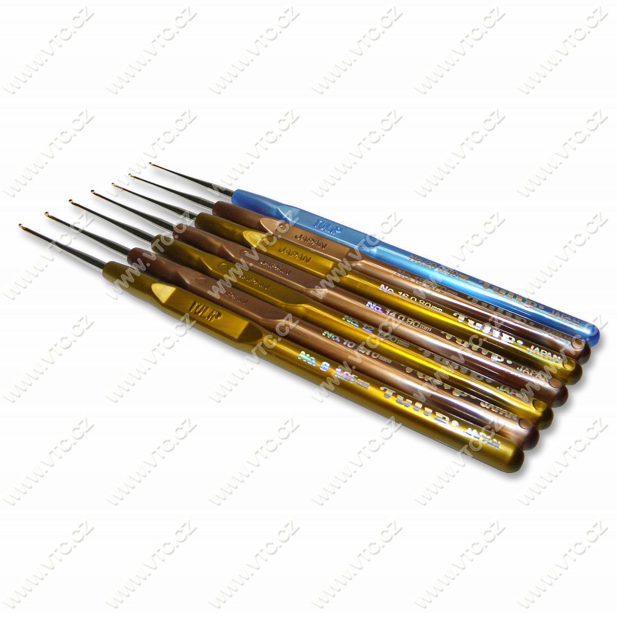 Crochet hook metal with plastic grip, 12 pcs in paper box, price for 1 pc (1 hook) + Assorted MIX (sizes 1,25+1,10+1,0+0,8+0,7+0,6).