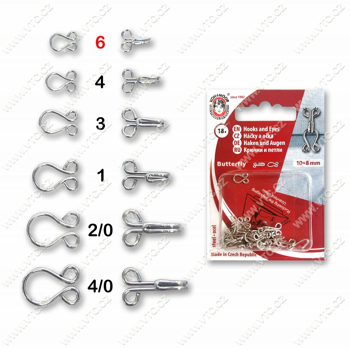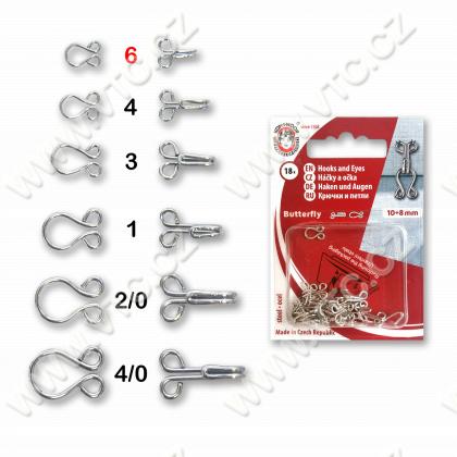 Hook and eye (10+8 mm), 18 pairs/card, price for 1 card, Czech product.