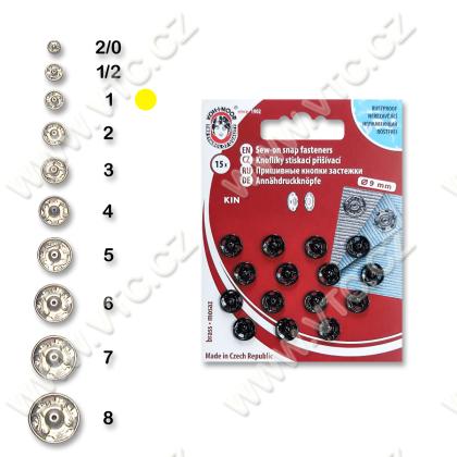 Snap fasteners KIN, size 1 (8,5mm), 15 pcs/card. Czech product, price for 1 card.
