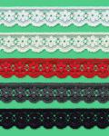 Vyberte si z množství zářivě bílých i barevných krajek s vroubkovanými či rovnými okraji. Nabízíme rozmanité šíře, vhodné jak ke zdobení a lemování oděvů, tak bytového textilu.