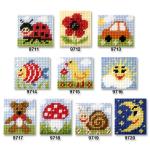 Sada vyšívací, různé motivy. Obsahuje předlohu 10,5x10,5 cm, vyšívací příze (100% bavlna), jehlu a návod. Cena za 1 ks.