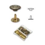 Nohavicové nity, veľ. 9,4 mm, staromosadz, 10 ks na karte, vrátane nitovacieho prípravku. Český výrobok, cena za 1 kartu.
