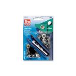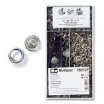 Stláčacie gombíky YACHT&CARAVAN 15 mm, 10 ks na karte, s návodom a príslušenstvom. Spodný diel je skrutka pre pripevnenie bežnej tkaniny na pevný materiál (napr.drevo). Možno aplikovať pomocou priloženého prípravku a kladívka, klieští Vario 39448 alebo trojnožky 39458. Taliansky výrobok, cena za 1 ks.