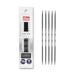 Revolučné ponožkové ihlice z vysoko funkčného syntetického materiálu s uhlíkovým vláknom vyrobené metódou Carbon Technology. Ihlice sú ergonomické, ľahké a tiché, a tuhšie a pevnejšie ako základná biela Ergo verzie. Špička v tvare kvapky umožňuje jednoduchšie zachytenie priadze a hladké vedenie jednotlivých ôk, čo je podporené aj trojuholníkovým profilom ihlice. Dĺžka 15 cm, priemer 3 mm, 5 ks v balení. Nemecký výrobok, cena za 1 balenie.