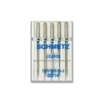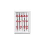 Štandardná strojová ihla s plôškou na drieku pre domáce šijacie stroje. Driek 2,04 mm, dĺžka po uško 33,99 mm. Obsah balenia – Standard (špička R) 2x70, 2x80, 1x90; Leather (špička LR) 1x100; Jeans (špička R) 1x100; Stretch (špička FG) 2x75, 1x90. Nemecký výrobok, cena za 1 krabičku (10 ihiel v krabičke).