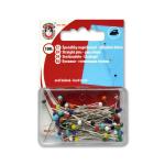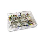 Špendlíky kalené so sklenenou hlavou, rozmer 0,8x48 mm. Krabička 30 g = cca 100 ks. Malajský výrobok, cena za 1 krabičku.