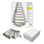 Zatvárací špendlík, nadružené veľkosti 1,2,3, 12 ks vo zväzku na krúžku, 50 zväzkov v krabici (600 ks). Český výrobok, cena za 1 krabicu.
