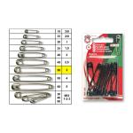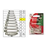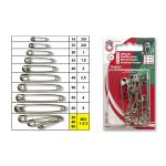 Zatvárací špendlík, nadružená dĺžka 28, 40, 50 mm po 4 ks, celkom 12 ks v PH krabičke. Český výrobok, cena za 1 krabičku.