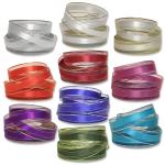Obojstranný textilný pásik, šírka 5 mm, hrúbka cca 2 mm, návin 10 m. Vhodný na dekoračné účely, výrobu náramkov, pásikov apod. Španielsky výrobok, cena za 1 m.