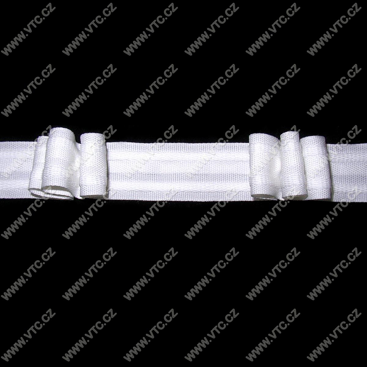 Pravidelne riasiaca záclonová stuha v šírke 25 mm. Po našití a nariasení pripevnite záclonu či záves pomocou háčikov alebo štipcov s využitím kapsičiek votkaných do stuhy. Miesto prešitia je označené votkanou modrou niťou. Vzdialenosť skladov 8 cm. Odporúčané riasenie 1:2. Český výrobok, cena za 1 meter.
