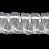 Číra, pravidelne riasiaca záclonová stuha v šírke 50 mm, tvarujúca záclonu do špeciálneho dvojitého tužkového riasenia (žabkové riasenie). Po našití a nariasení pripevnite záclonu či záves pomocou háčikov alebo štipcov s využitím kapsičiek votkaných do stuhy. Odporúčané riasenie 1:2,25. Český výrobok, cena za 1 meter.