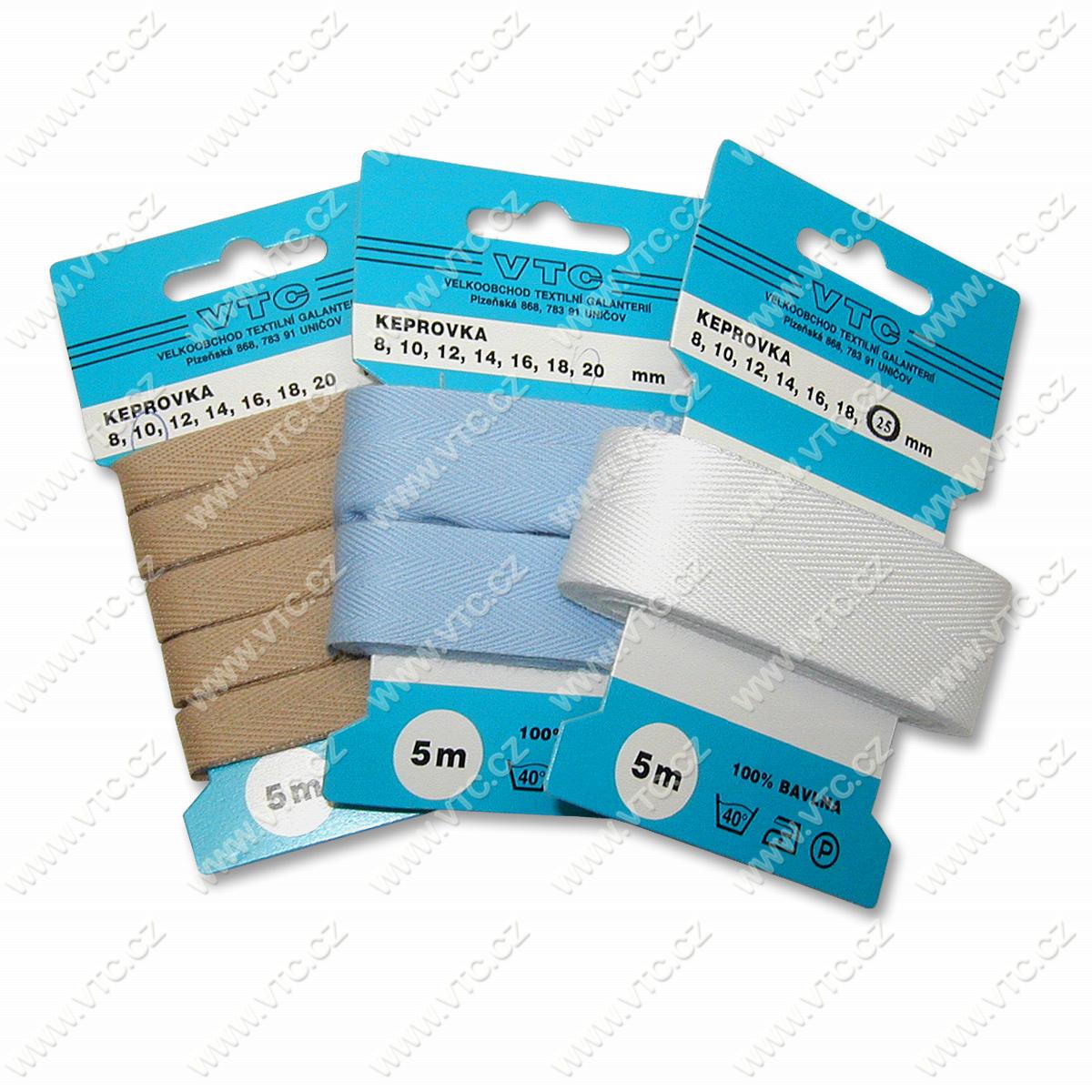 Keprová stuha na karte 5 m, cena za 1 kartu, český výrobok.